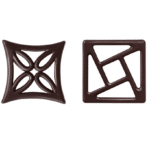 The Harmony is a set of chocolate filigree decorations in the shape of a square and diamond with delicate geometric patterns. They are made of high-quality dark chocolate with dimensions 38 x 38 mm and 40 x 40 mm.