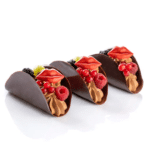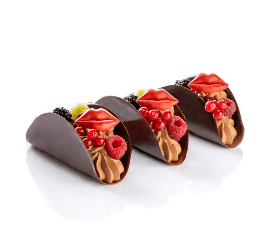 The Kiss is a 45 x 27 mm decoration made of high-quality white chocolate with an intense red colour. The perfect shape of red lips and the vivid colour open the chance to produce romantic confectionery creations to win the heart of anyone with a sweet tooth.