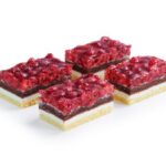 We couldn’t possibly have fit in more raspberries! One chocolate and one light gateau base, with delicious vanilla cream in-between, covered with plenty of raspberries and finished off with a jelly glaze.