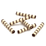 The Penne is a decoration in the form of thin rolled-up tubes, 35 mm long, made by combining white and dark chocolate to achieve a designer striped pattern. Thanks to their versatility and delicate form these rolls are widely used for decorating confectionery creations.