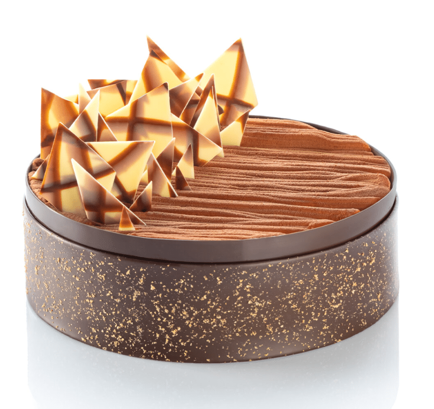 The Triangle Marble is a decoration made of high-quality white and dark chocolate, combined to form balanced patterns. The carefully-designed form, convenient size (35 x 55 mm) and original pattern make the decoration perfect for refining confectionery products.