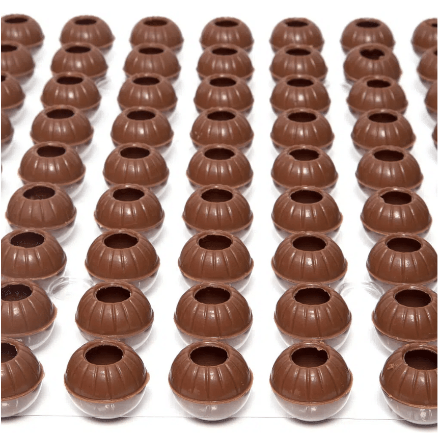 The Truffle Shell Milk is a 25 mm round truffle shell made of high-quality milk chocolate. It is used to make truffles, lollipops and other sweet snacks. Its delicate and ornamental form and the possibility of stuffing it with any cream, ganache or filling, enables making impressive chocolate truffles, just perfect for a sweet table.